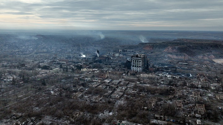 | The ruins of the city of Toretsk are in the Donetsk region, eastern Ukraine, on December 19, 2024. (Photo by Ukrinform/NurPhoto via Getty Images) |